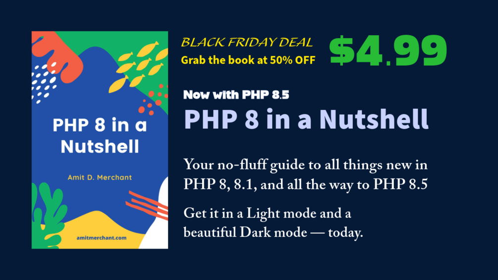 The book covers all of PHP 8's developer-facing features in a concise format that covers the important nitty-gritty and what you would want in a real-world scenario.